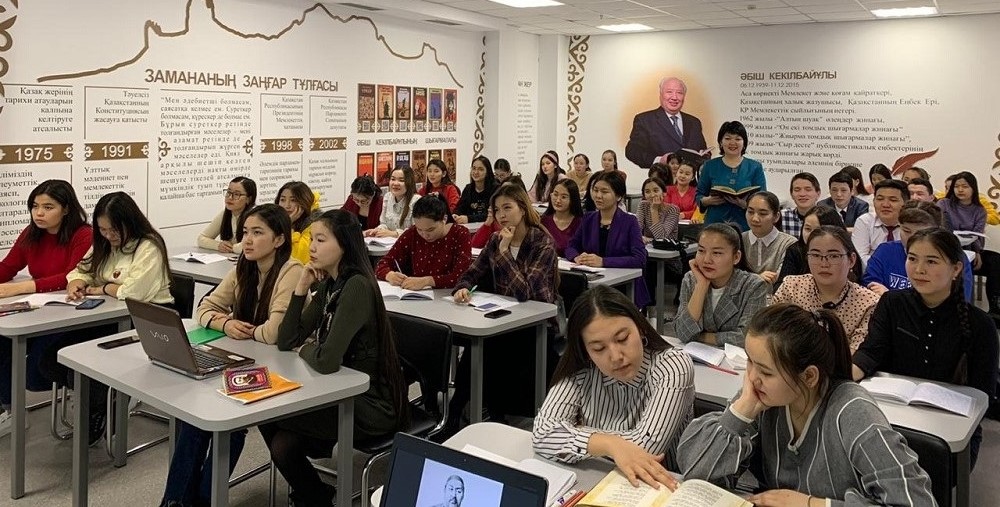 On the eve of the 80th anniversary of the People’s Writer of Kazakhstan, prominent statesman and public figure, Hero of Labor of Kazakhstan Abish Kekilbayev, the “Research Laboratory named after Abish Kekilbayev” was opened. The laboratory is equipped with modern multimedia equipment for the educational and research process, in particular, a multifunctional projector, a magnetic board, an interactive whiteboard, an Internet computer device, special textbooks, teaching aids, scientific literature.